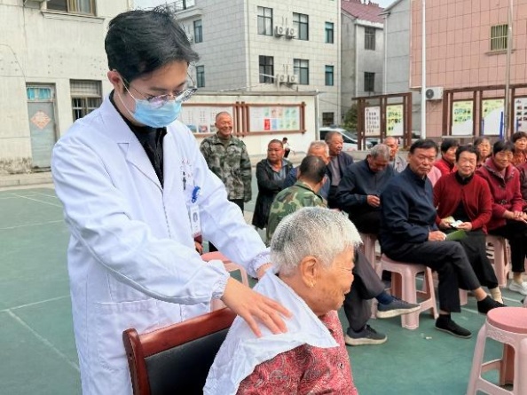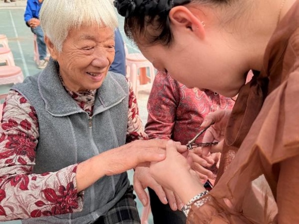 物資表心意,服務(wù)更暖心?;顒?dòng)現(xiàn)場(chǎng)專門設(shè)置了公益理發(fā)、健康義診、推拿服務(wù)等志愿項(xiàng)目,由醫(yī)生和志愿者們?yōu)槔先颂峁┵N心服務(wù),現(xiàn)場(chǎng)氣氛溫馨而有序。87歲的章秋玉老人家在推拿醫(yī)生按完肩頸后,紅了眼眶:“年年都想著我們,真是和家里人一樣親。”?